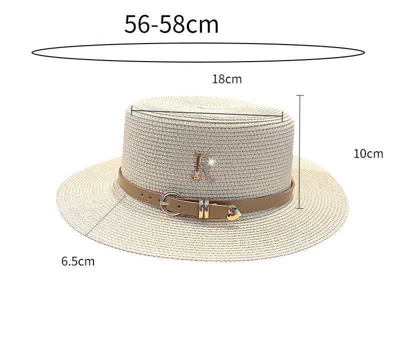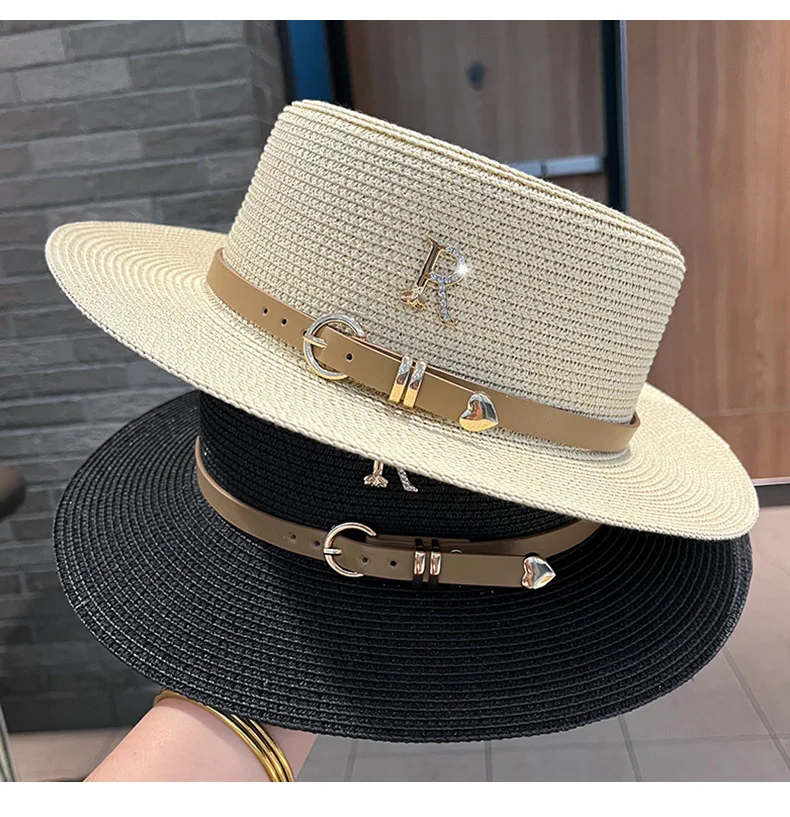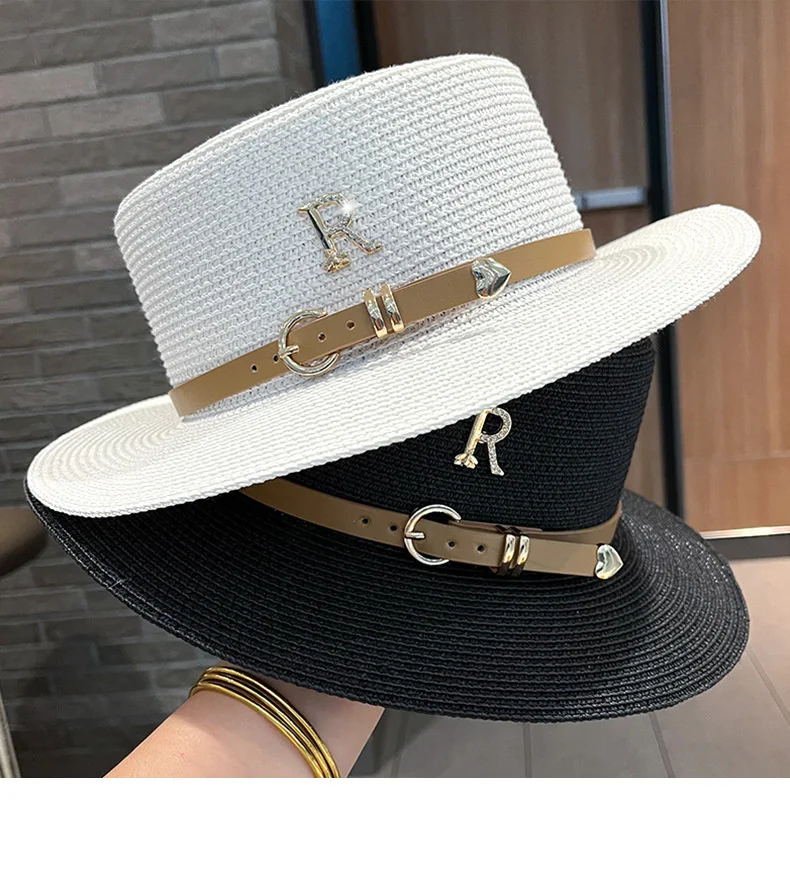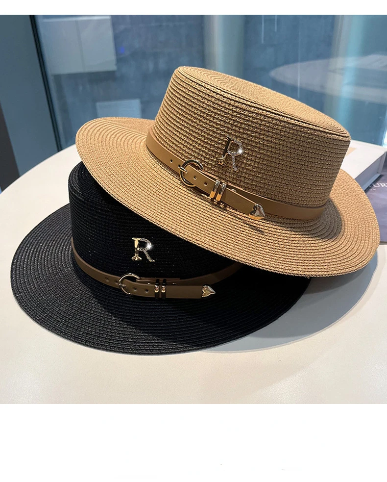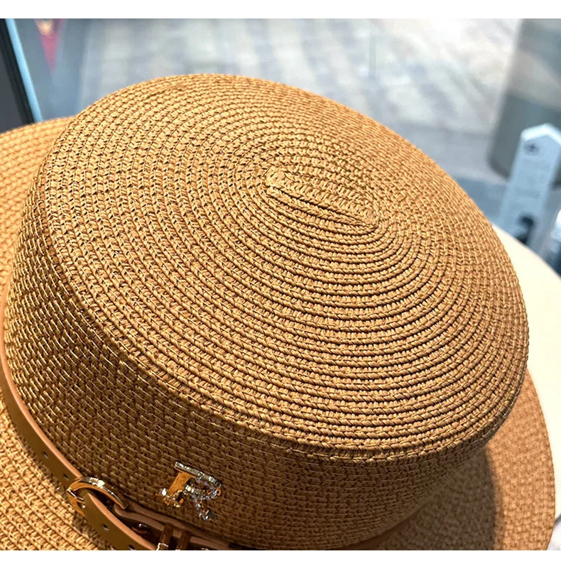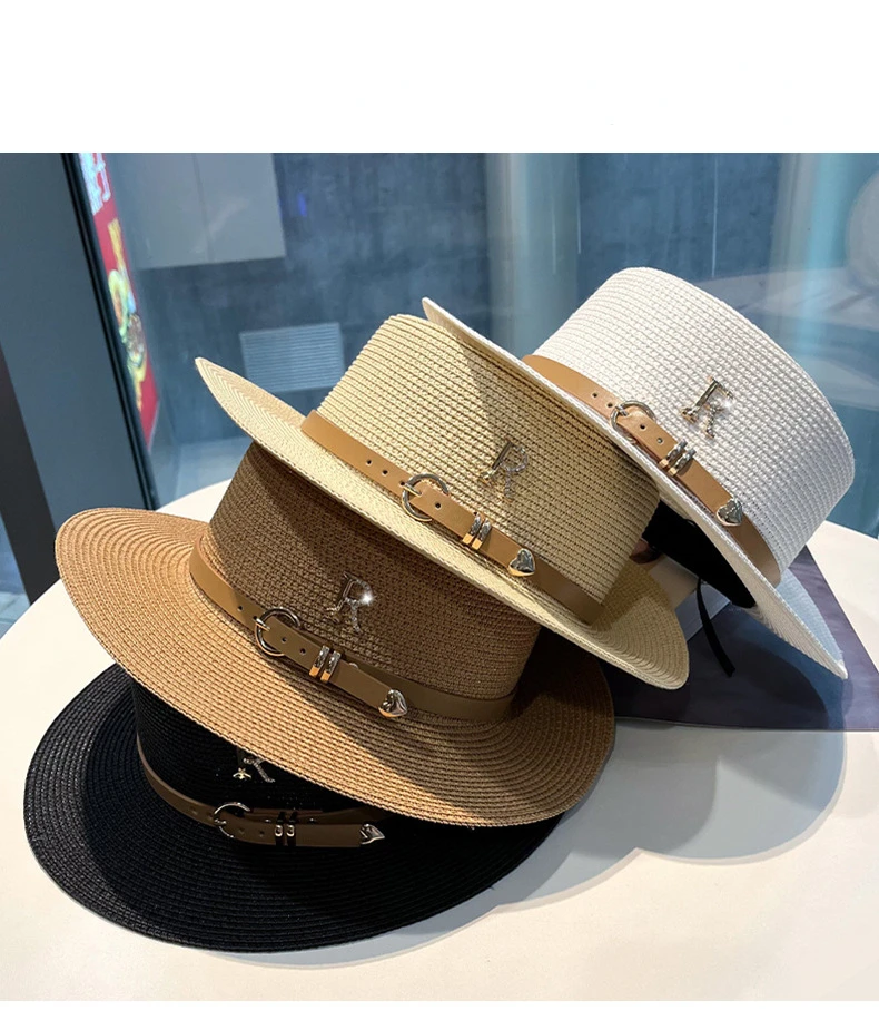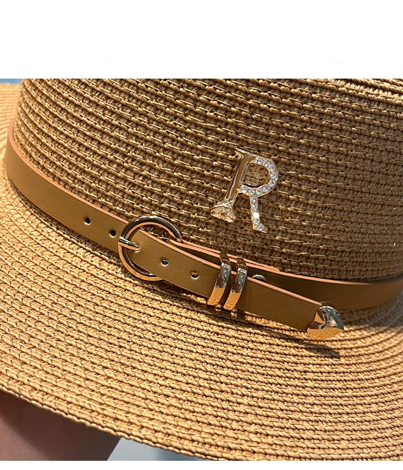 2023 New Metal R Letter Buckle Straw Hat Leisure Summer Sunscreen Hat Women’s Fashionable Beach Hat Vintage Hat Church Hats