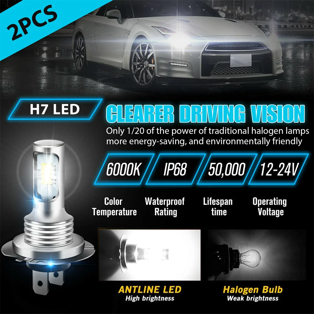2Pcs H7 H4 Led Car Fog Light Bulbs H1 H8 H9 H11 9005 9006 Super Bright CSP LED Headlight DRL Lamp Kit High Low Beam 6000K 12V