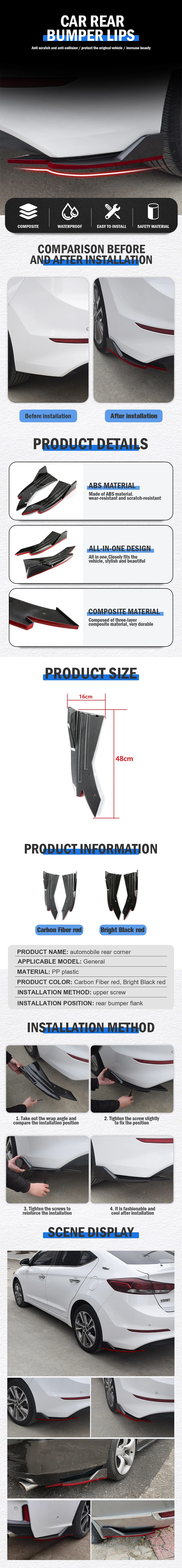 2PCS Universal Car Rear Bumper Spoiler Lip Carbon Fiber Wing Trim Protection Anti-crash Diffuser Side Skirt Wrap Angle Splitter
