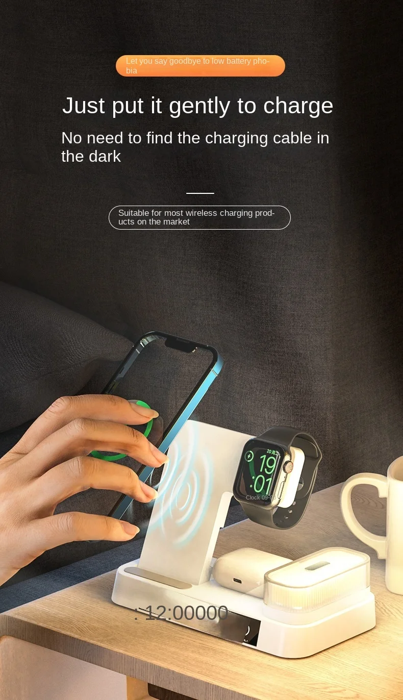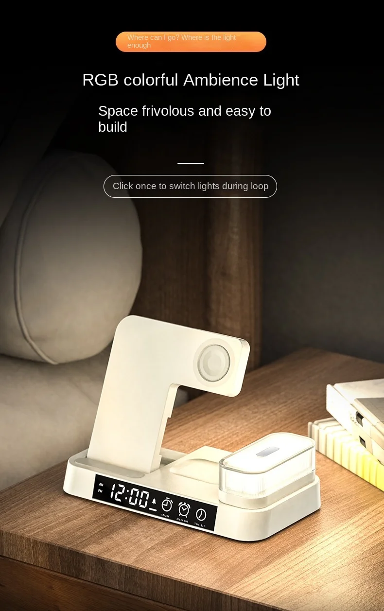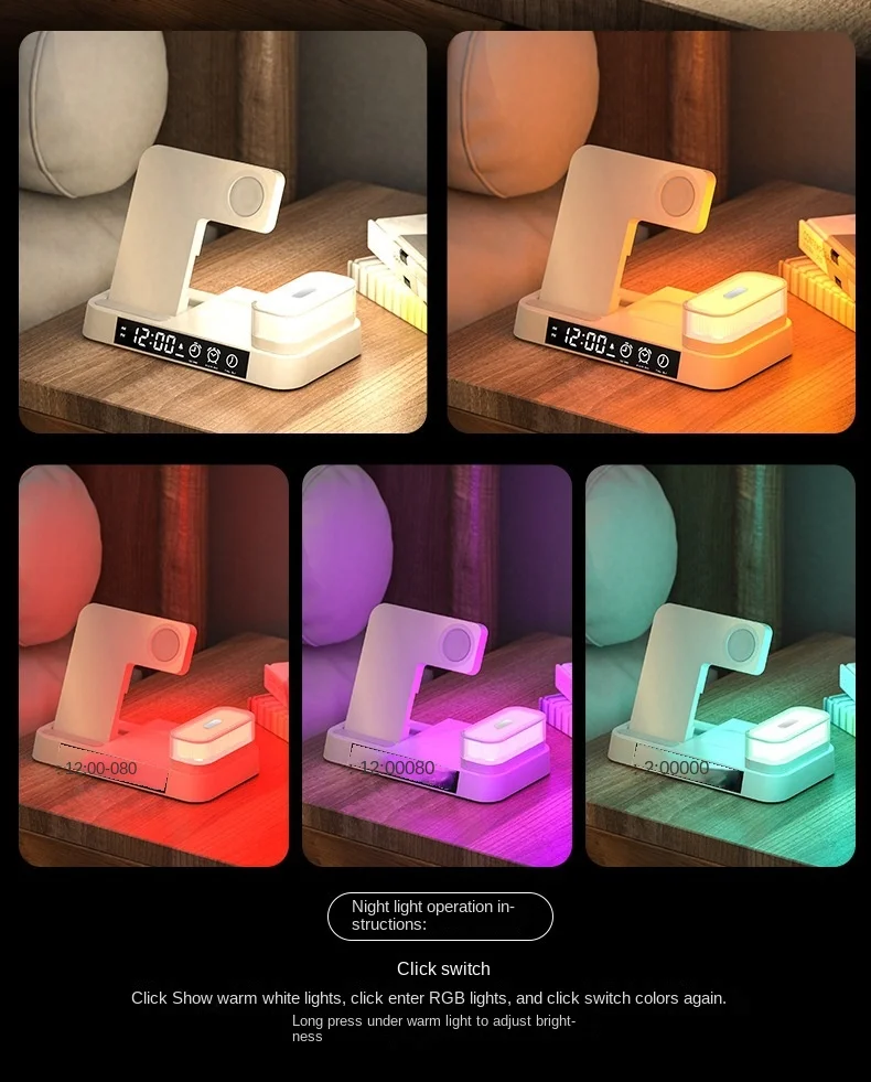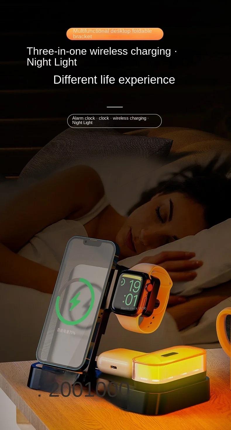 Tags: 3 in 1, Base, Charger, clock, Headset, iPhone13, iPhone14, Mobile, Multi-function, Night Light, Quick Charge, Remove, RGB, Small, Watch, Wireless