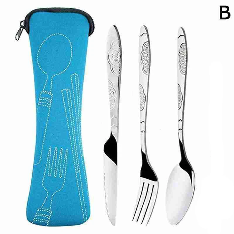 3Pcs Steel Knifes Fork Spoon Set Family Travel Camping Cutlery Eyeful Four-piece Dinnerware Set with Case