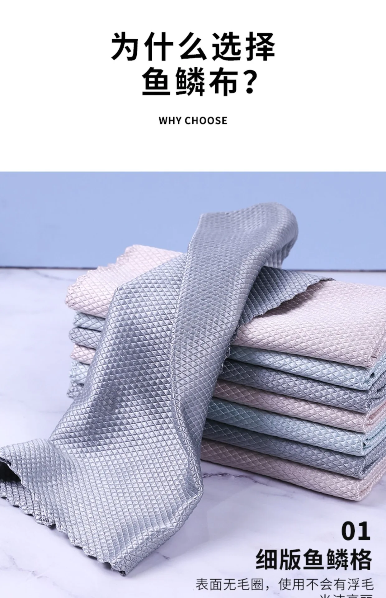 5/10 Pcs Anti-Grease Fish Scale Wipe Efficient Kitchen Microfiber Scale Washing Rags Clean Towel Cloths Home Tools Dish Cleaning