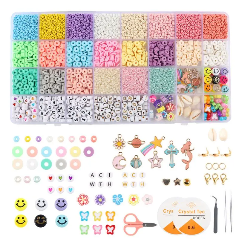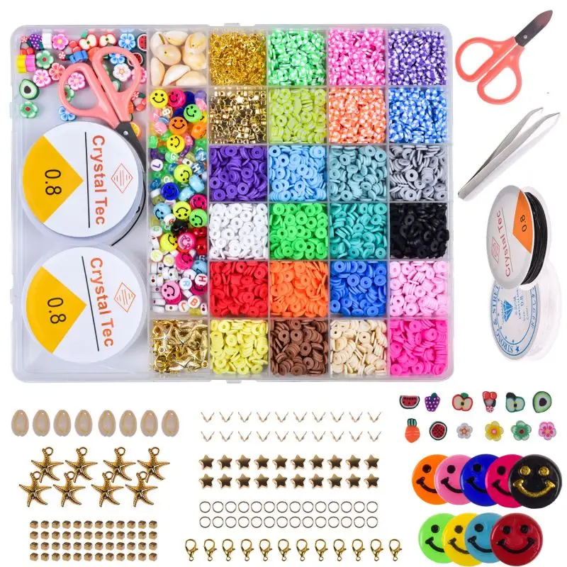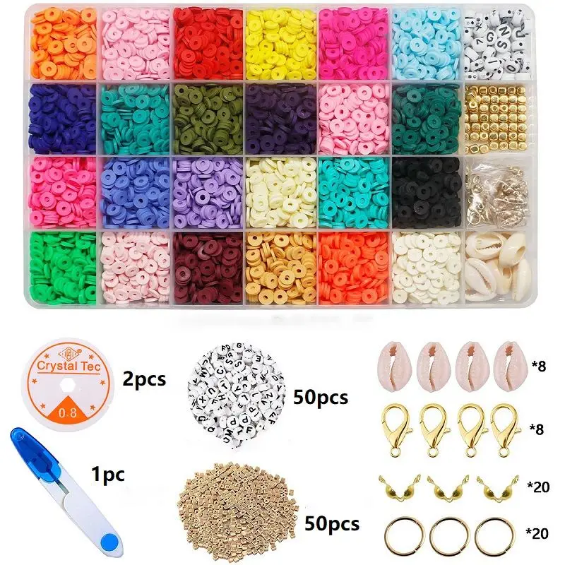 24 color clay flat beads
