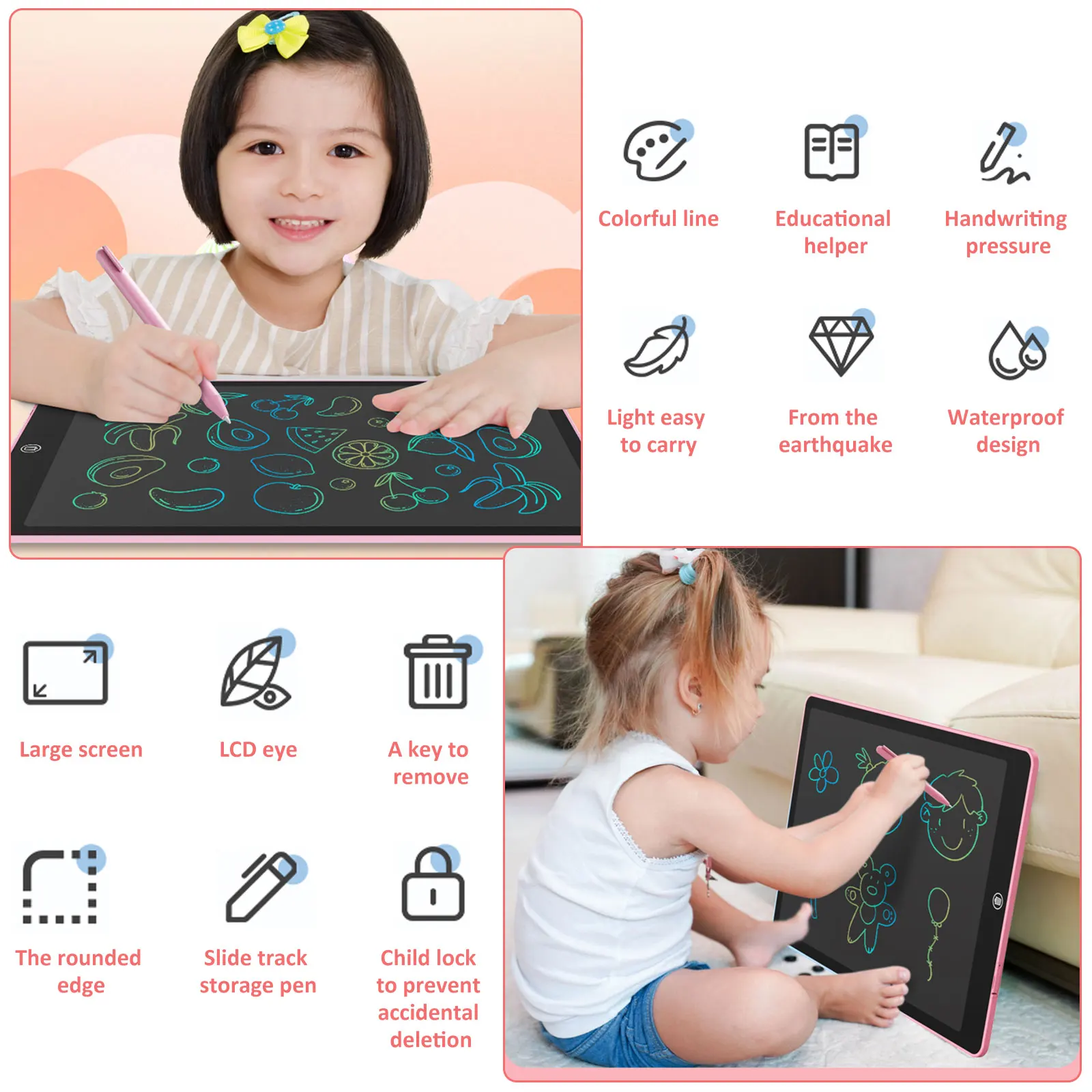 -Perfect Christmas gifts for kids and adults: The drawing tablet is suitable for children and adults. Kids can use this drawing board to stimulate their creativity and keep busy, like scribbling, counting or practicing words. Adults can update shopping list, take notes or leave messages on it. Writing tablet is definitely an integral part of your gift list.