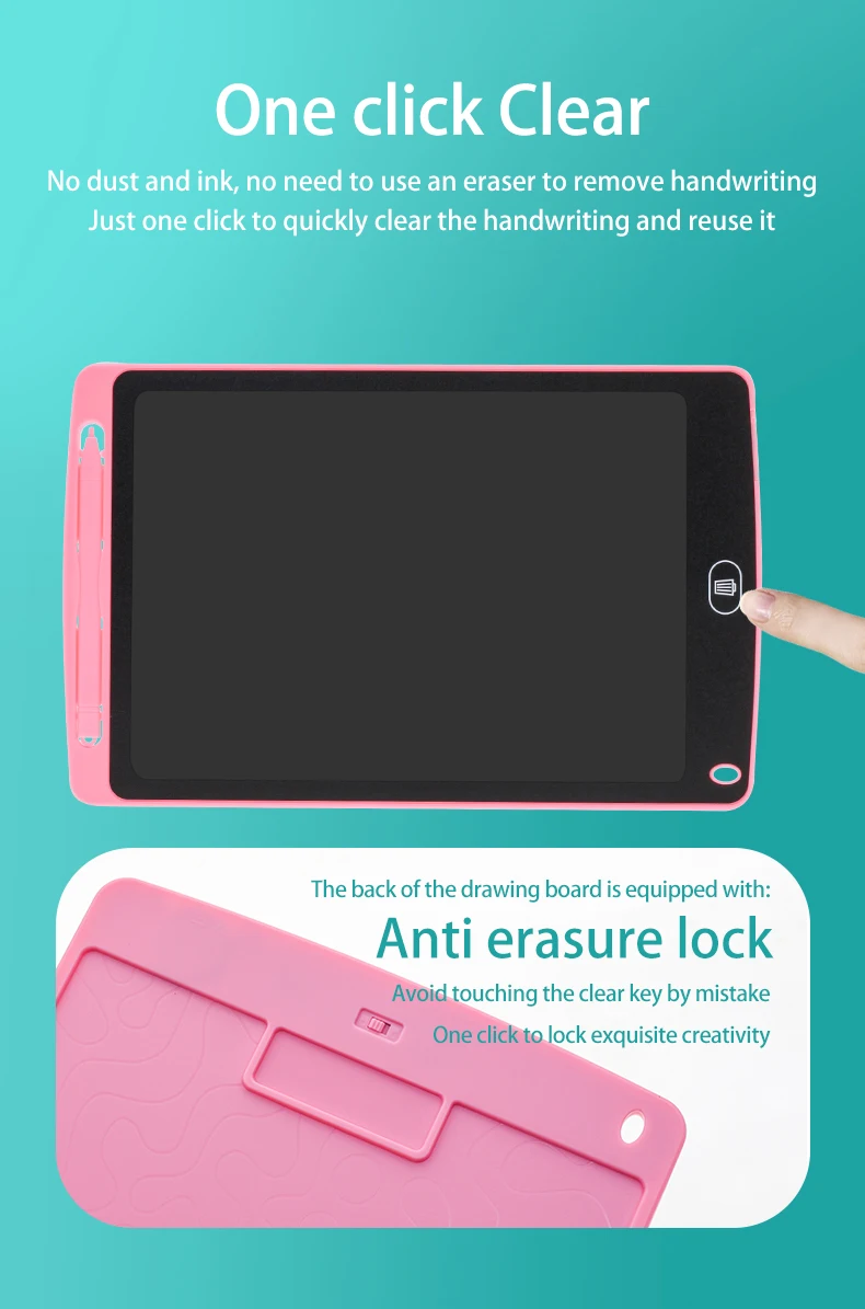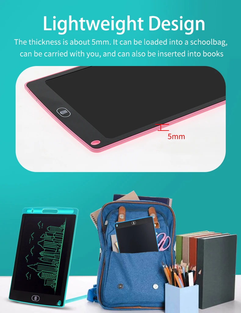 -Durable and portable: Writing pad’s case and LCD screen are made from durable materials, anti-shock and anti-fall. Writing board is totally lightweight to put in backpack when go to school or go to work.