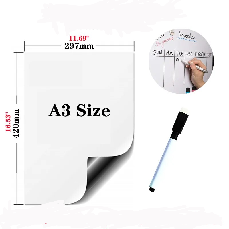 A3 Size Magnetic Whiteboard Dry Erase White Boards Soft Home Office Kitchen Flexible Pad Fridge Stickers Memo Message Board