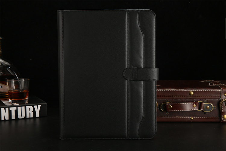 A4 Portable File Folder with Calculator Organizer Business Manager Office Document Pads Briefcase PU Leather Buckle Padfolio Bag