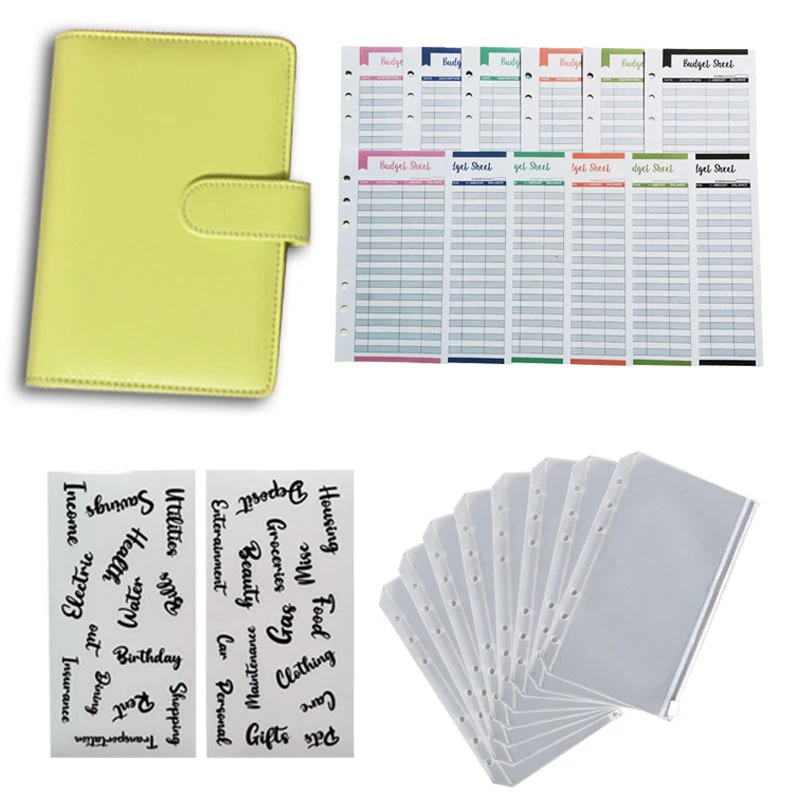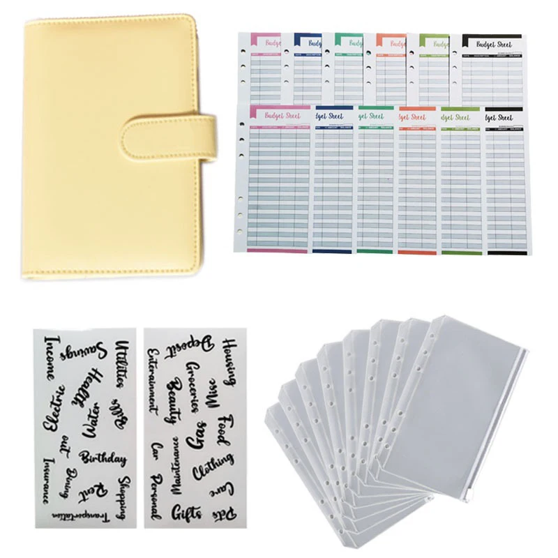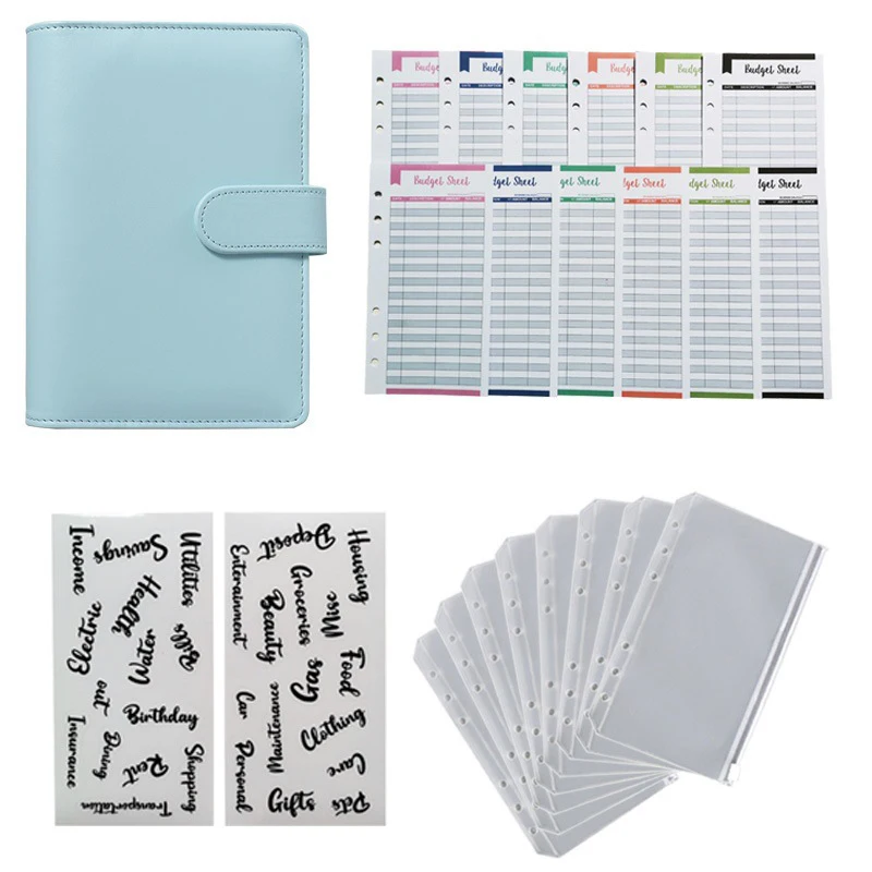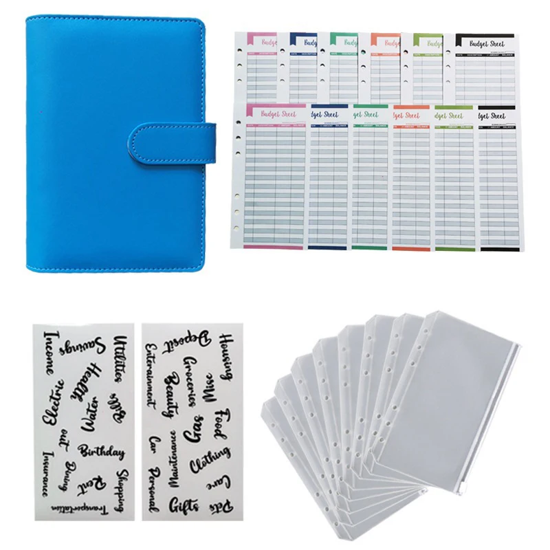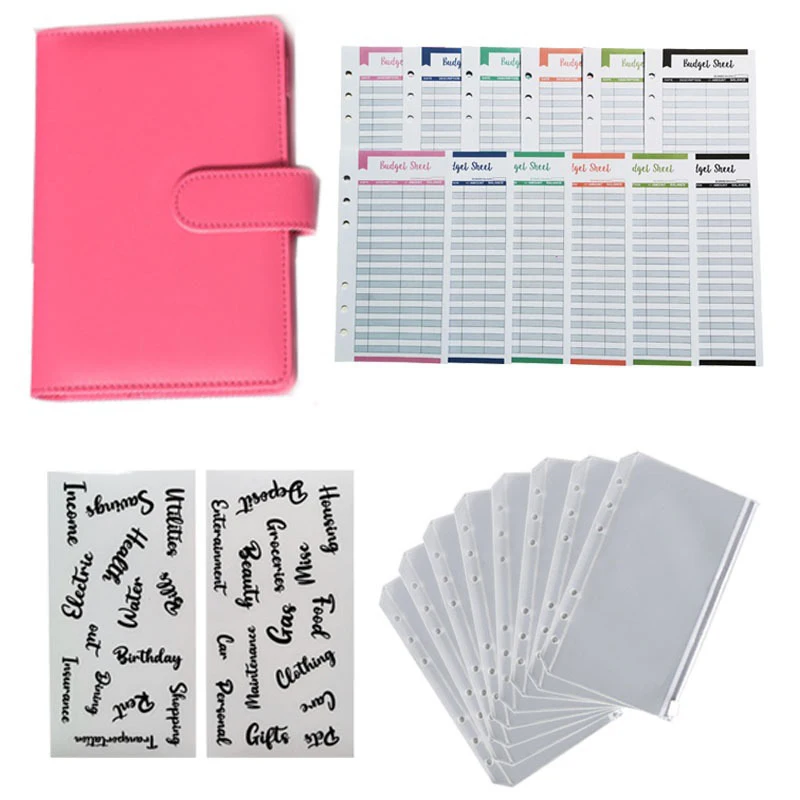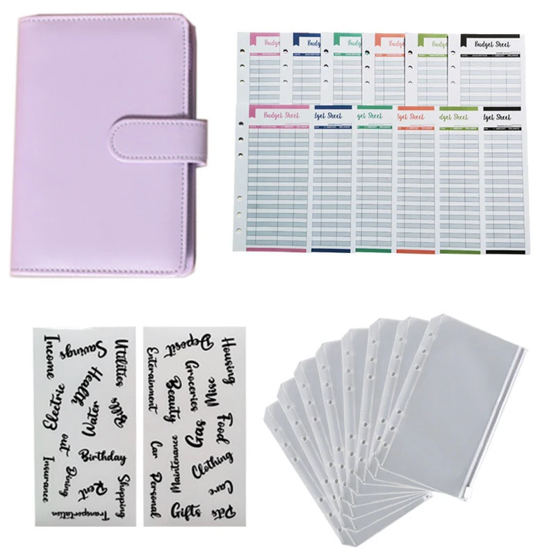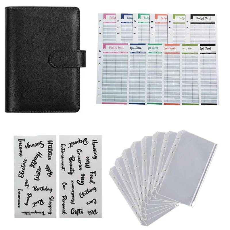 A6 PU Leather Budget Binder Planner Organizer Notebook With 12 Expense Budget Sheets 8 Zipper Money Saving Envelope