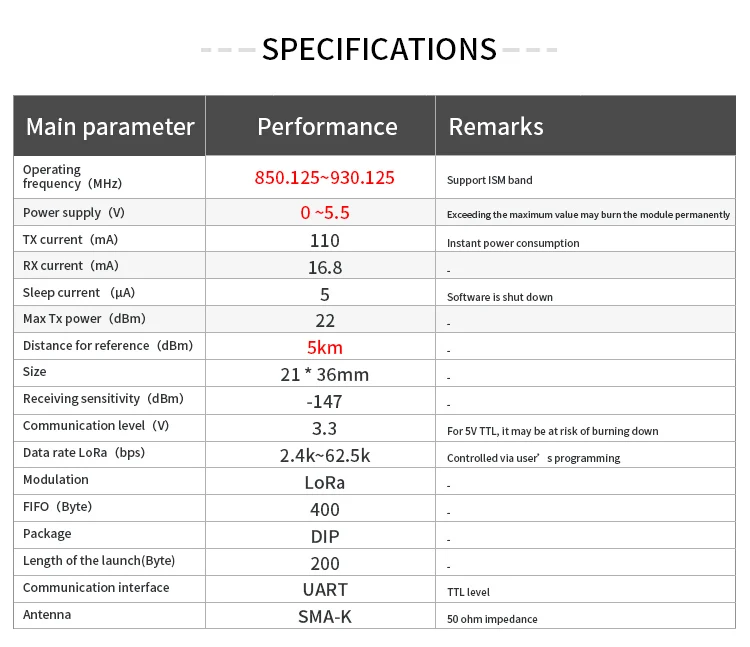 COJXU LLCC68 LoRa Module 868MHz /915MHz Rf Module 5km Long Range Wireless Transmitter and Receiver SMA-K Antenna E220-900T22D