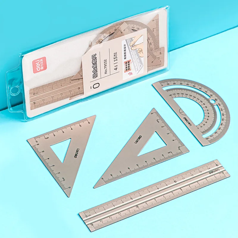 Tags: Aluminum Drafting, Deli, PCS Ruler, Protractor Stationery., School Straight, Straight Ruler, Triangular Protractor