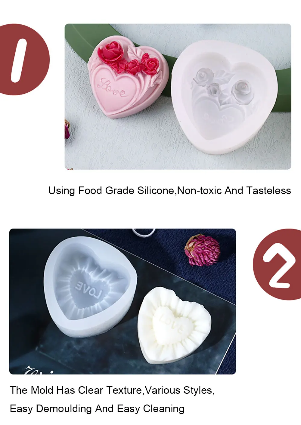 Item Nameļ¼ Heart shaped Silicone Candle Mold
