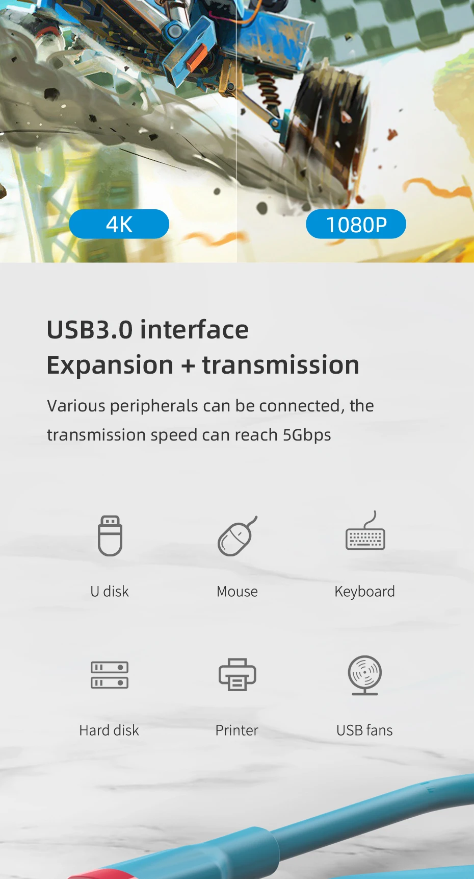 【Multifunction & Multi-port】 With 4K HDMI-compatible, USB 3.0, 100W PD charging ports, the three ports can be expanded at the same time to meet your various needs,The transmission speed of USB3.0 can reach 5Gbps
