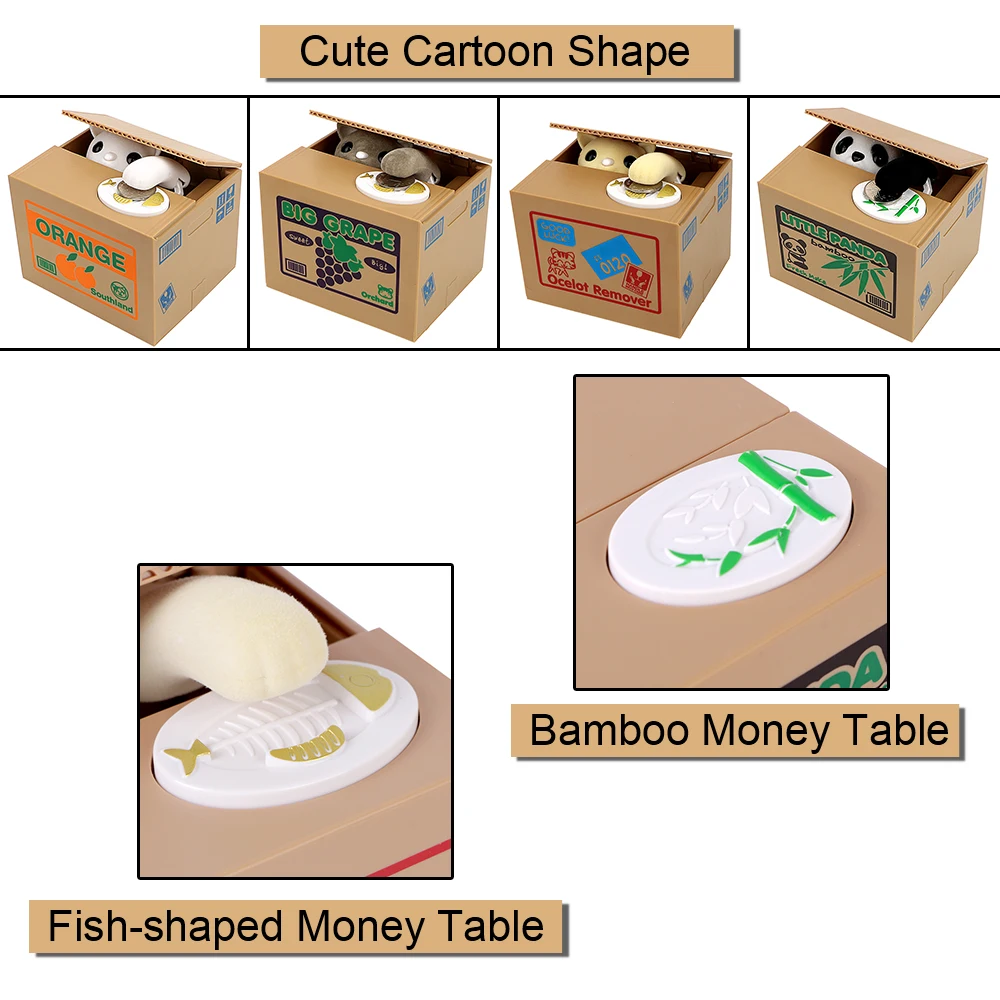Tags: Automated, box, Cat, coin Bank, Electronic boxes, Gifts, grey, kids, kids gift, Money Boxes, Money Saving Box, panda, Piggy Banks, plastic, Steal Coin, white, Yellow