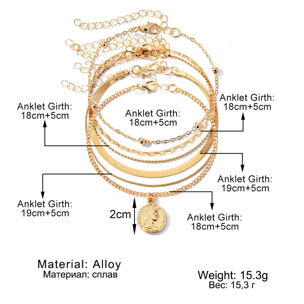 Tags: Bead Coin, Bracelet On Leg, Fashion Jewelry, Foot, Gifts, Metal Anklet, Multilayer, Pendant, Women