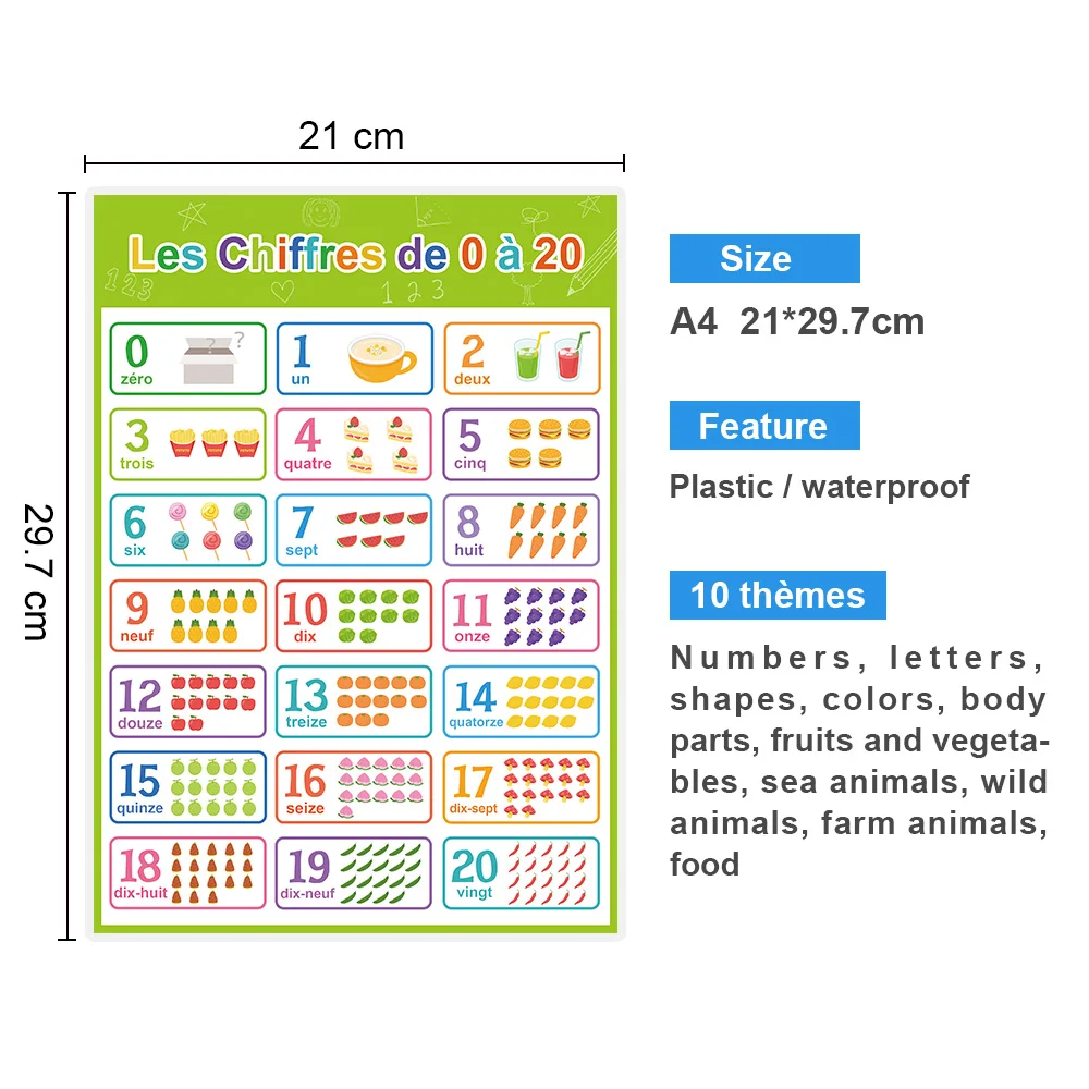 Tags: A4 Poster, Big Cards, Educational toys, for Kids, Laminated French Learning Chart, School Classroom Decoration, Teaching Aids, toys