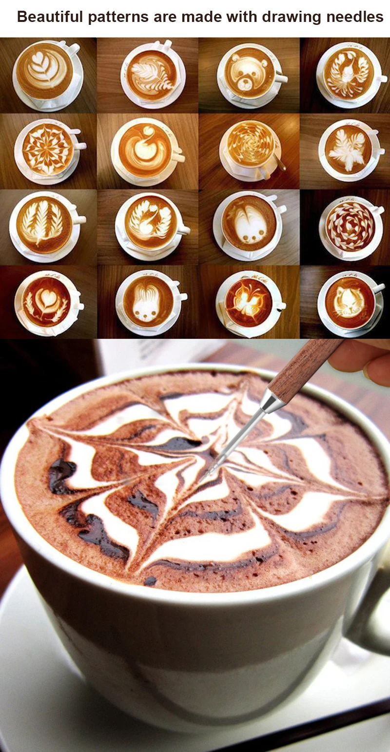 Professional latte art pen tool to shape beautiful coffee pattern.