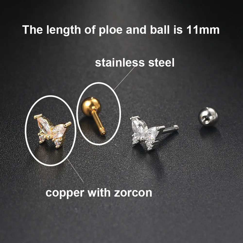 Tragus Helix Piercing Drop Earring for Women Rook Lobe Cartilage Butterfly Ear Percing Chain Earring Stainless Steel Jewelry