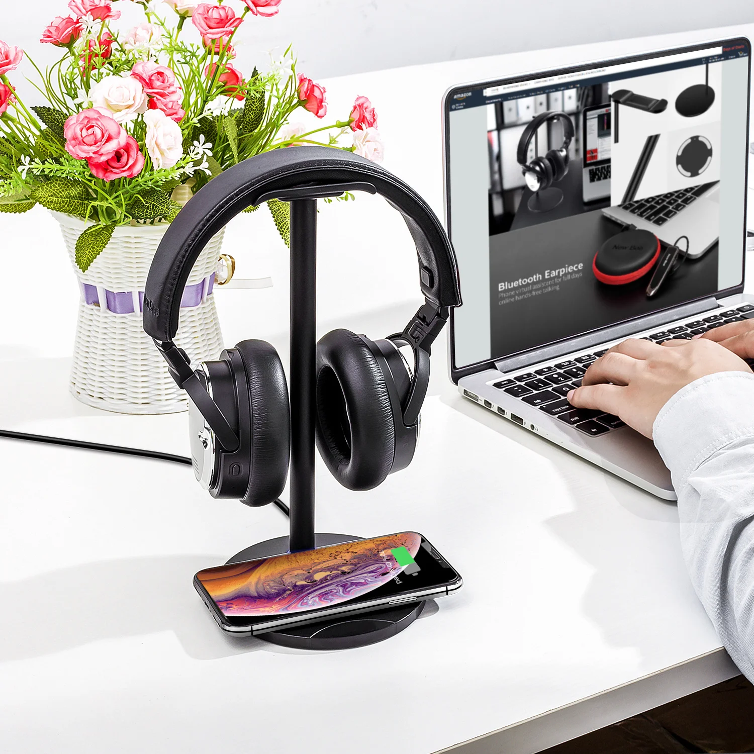 Link Dream Wireless Charging with Headphone Stand Sturdy 2-in-1 Headset Holder & Wireless Charger Pad with LED Indicator 5W 7.5W 10W 3 Kinds Charging Speed For Any Support Qi Phones