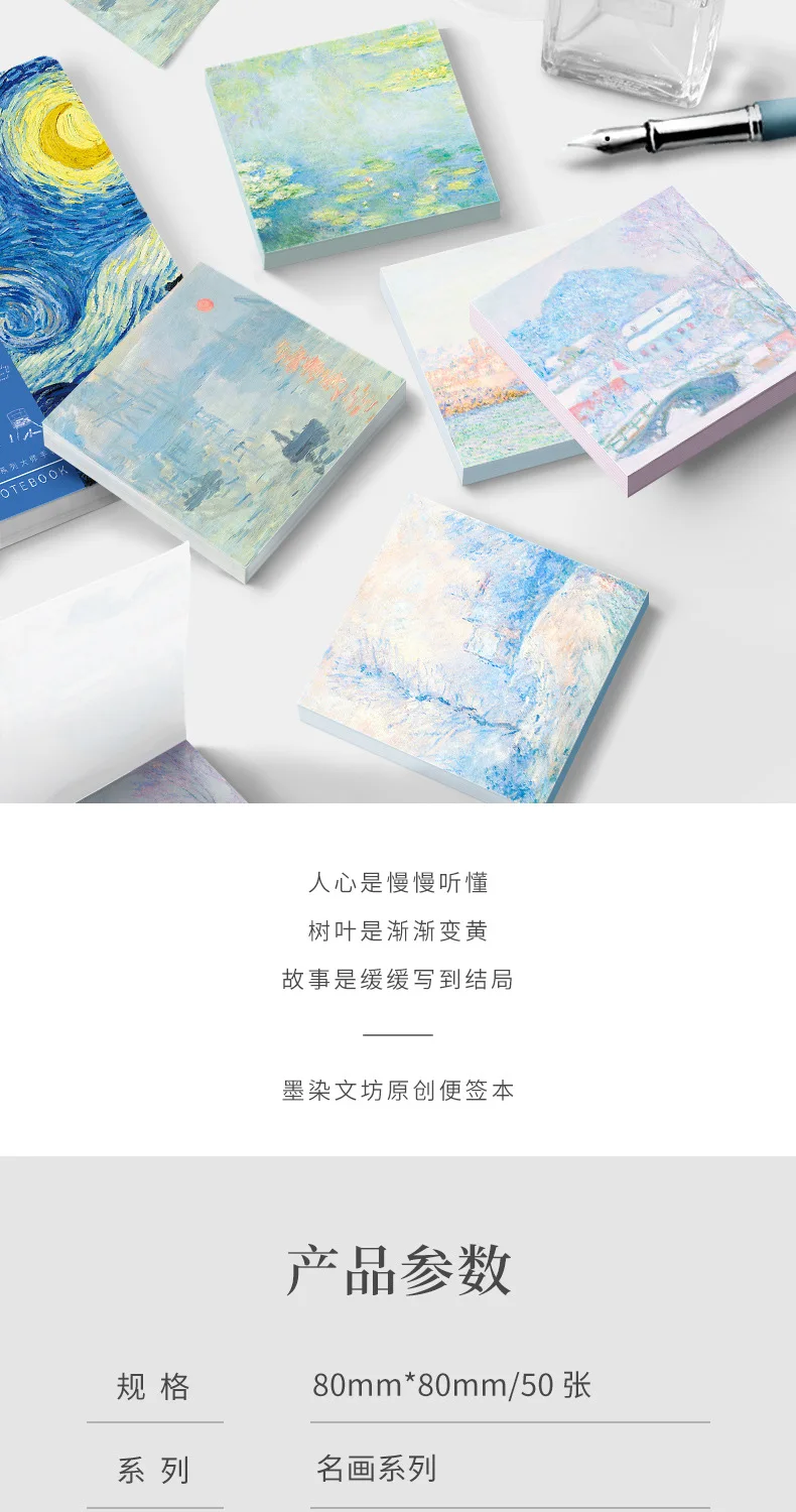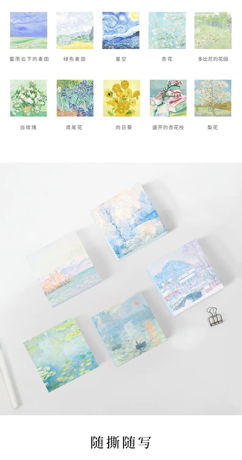 Beautiful sticky note, famous paintings Van Gogh, square, good space to write, although they are so cute it is too bad to grate them jijiji