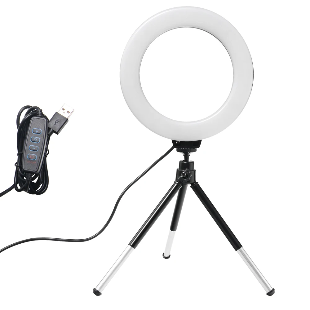 SH 16cm 6 inch Ring Light With Tripod Stand Usb Charge Selfie Led Lamp Dimmable Photography Light For Photo Photography Studio