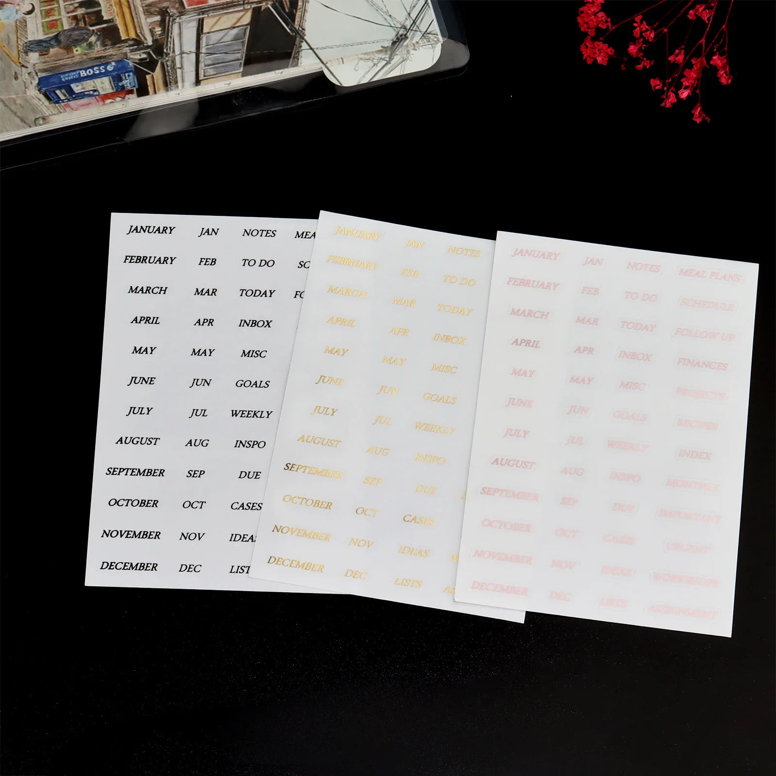 Tags: Black, Diary Book, Gold, Index Separator, Page Dividers, Rose Gold, Sharkbang, Spiral Binder, Stationery, Sticker, Transparent, transparent Notebook