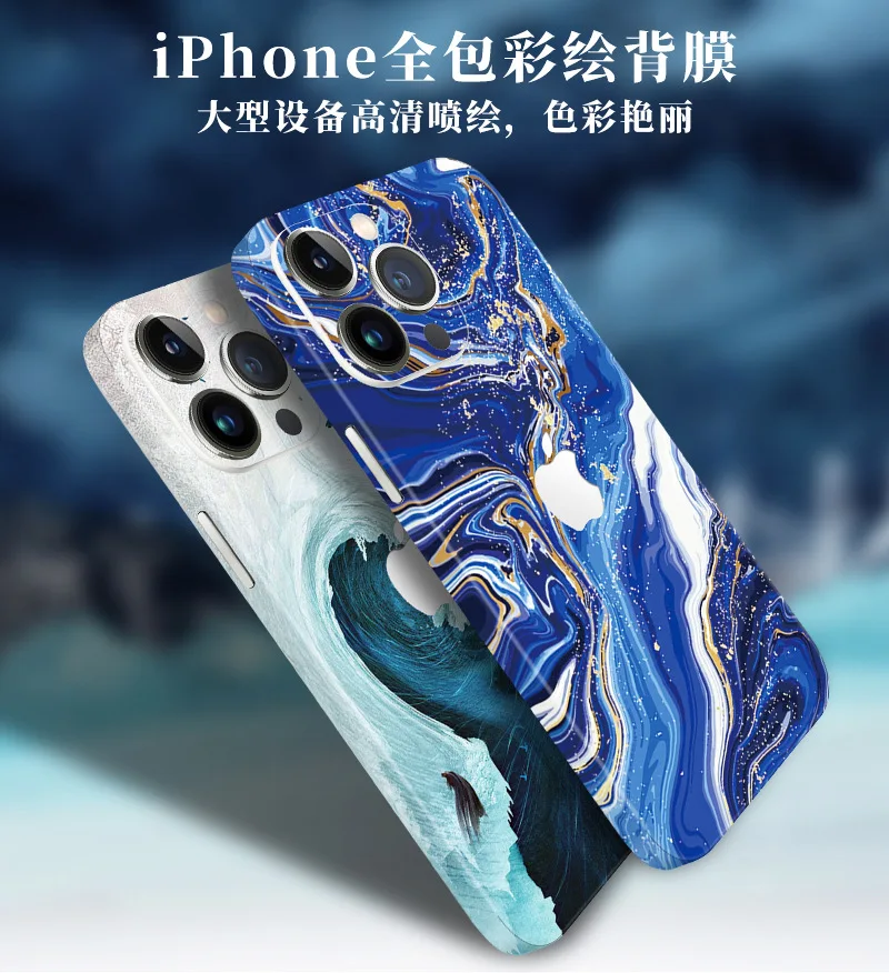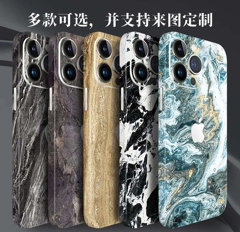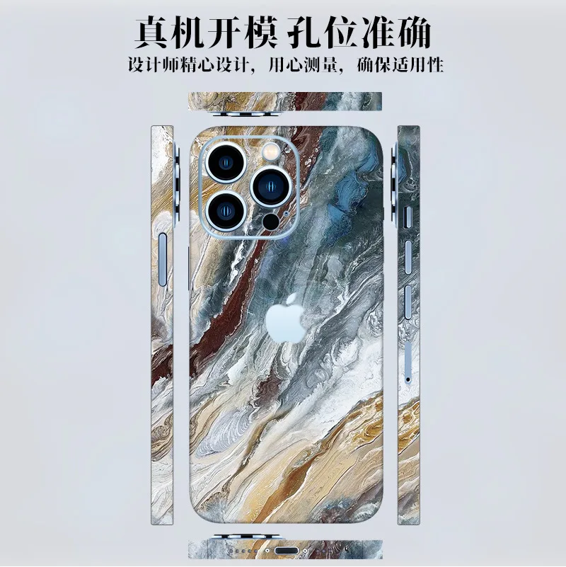 Stone Pattern Full-Wrapped Rear Sticker Wrap Skin Film For iPhone 14 13 12 Pro Max 13Pro mini 12Pro 14Pro Full Cover Back Film
